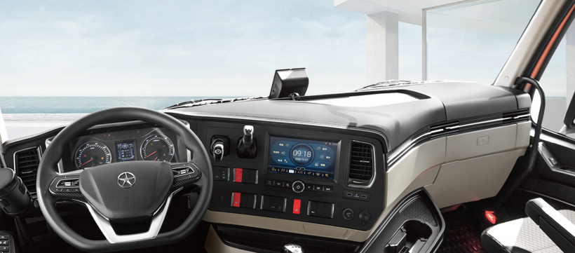 整车内饰采用黑色+米色双色搭配,完美地区分了工作区和休息区,同时避免了全黑内饰的沉闷感和全浅色内饰不耐脏的弊端。