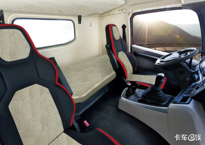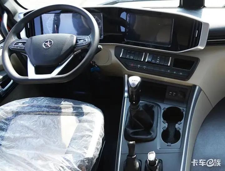 在内饰上,尊龙凯时V7采用了乘用车化设计,米色与深灰配色让内饰质感更高级,明快的色彩搭配让卡友在驾驶时可以放松身心。环抱式仪表台中控集成了大量的操控按键,距离驾驶席位置得当,让卡友在驾驶时操作轻松快捷。