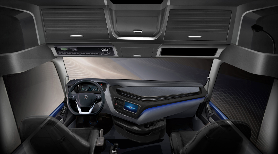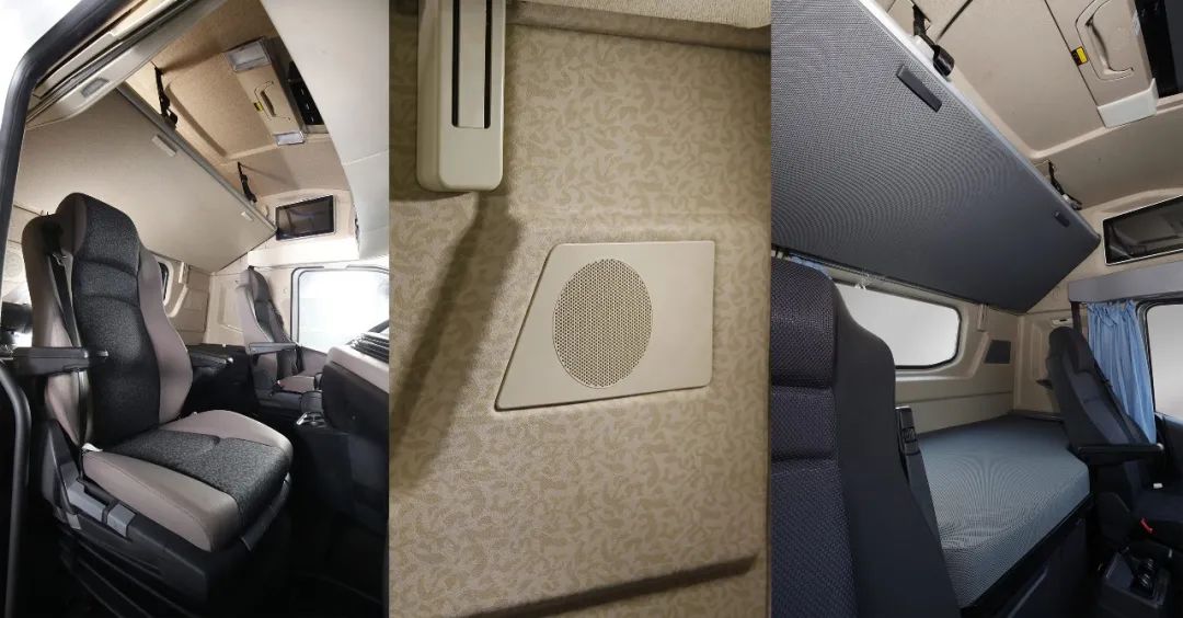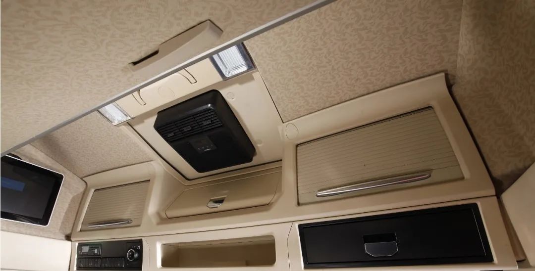 尊龙凯时V9可装顶置式驻车空调,220Ah的大容量蓄电池,满足停车发动机熄火的情况下,还可以让驾驶室维持在舒适的温度。配备的高端扬声器,提升车内音频播放的效果和品质,提升卡友体验感。同时可通过蓝牙遥控器控制多媒体播放、音量、空调系统、玻璃升降、门锁、室内灯等。