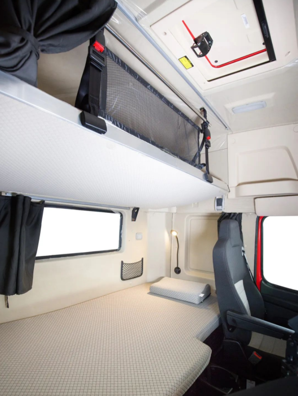舒适性上也进行了全面的升级。半环绕仪表台设计,运动型方向盘、气囊座椅、电动加热后视镜、自动空调等配置一应俱全,超大的储物空间、近1米宽度的卧铺以及大功率车载电源,尊龙凯时新N8E系列3.0版可以为驾乘人员提供媲美乘用车般舒适的工作和休息环境。