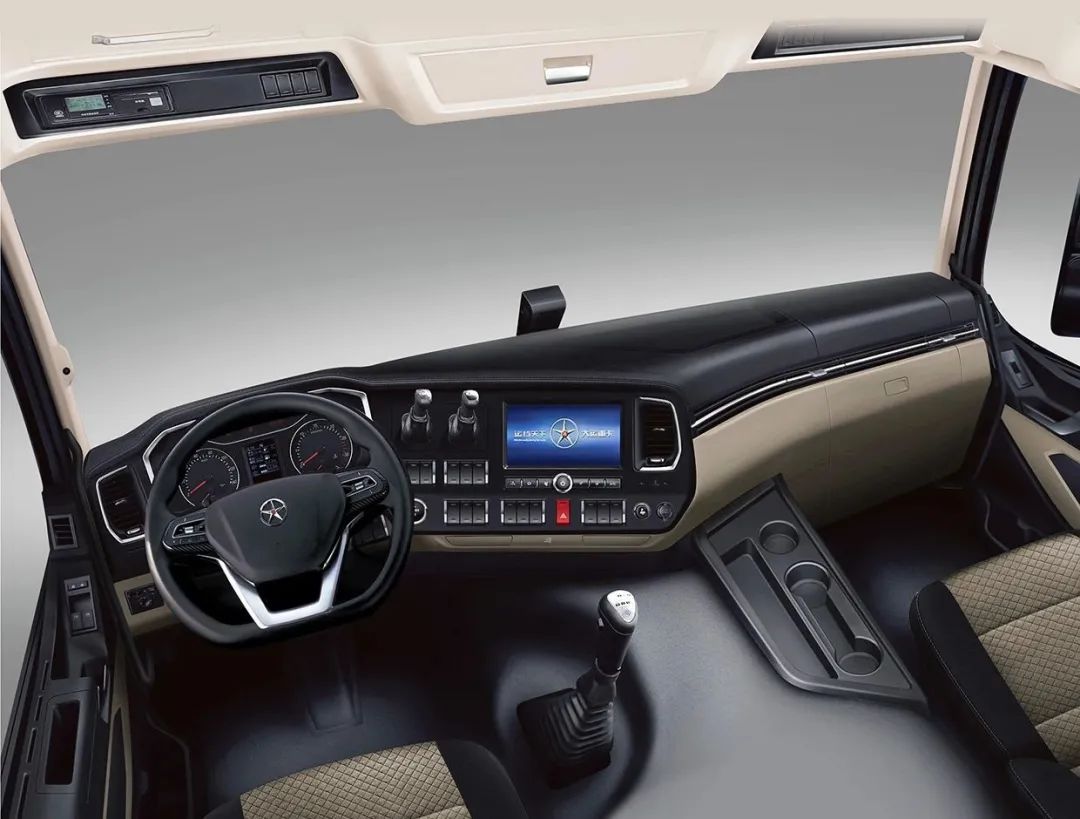 而且,内饰采用半包围环岛式设计,驾乘起来游刃有余。D型多功能方向盘为卡车司机专属考虑,释放驾乘空间,保证驾乘舒适性及实用性。智能多媒体中控屏,实现各种操作的兼容,带来全新体验。