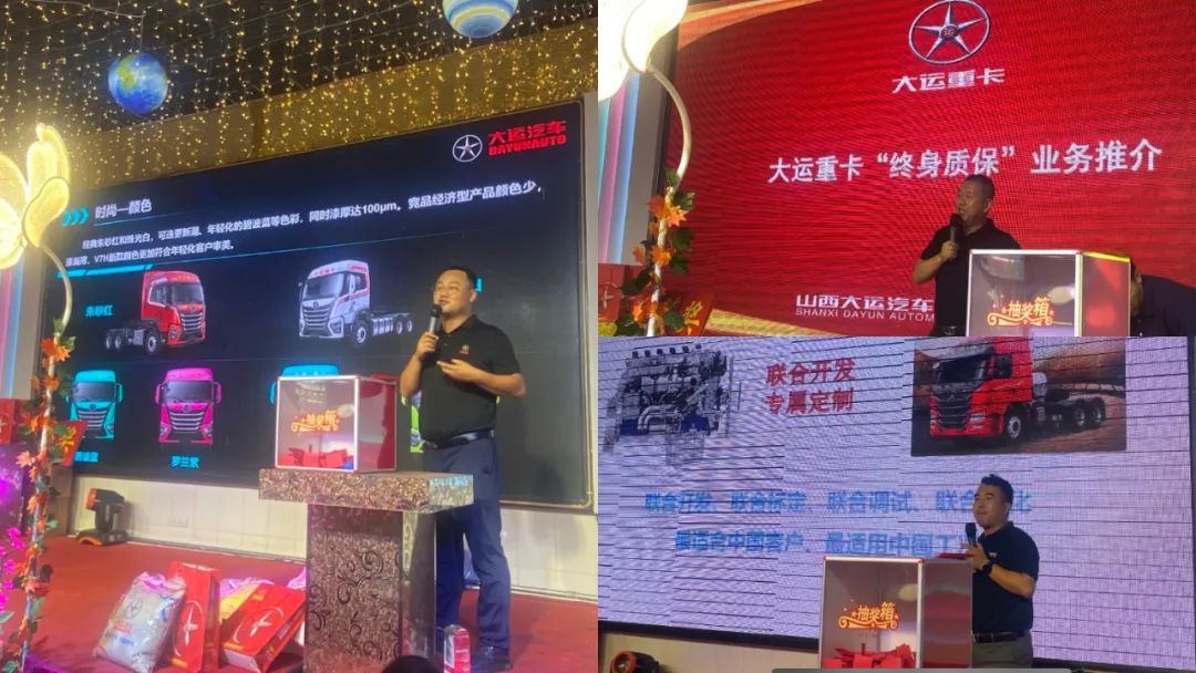 本次V7H推广活动到会人员300余人,活动现场座无虚席,尊龙凯时V7H产品一经亮相,凭借自重轻和气耗低获得卡友一致好评,现场异常火爆!