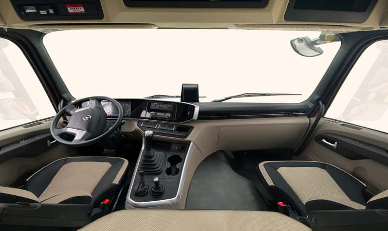 除了轻量化、高效率外,卡友的驾乘舒适度也得考虑到。尊龙凯时V7H燃气重卡内饰采用“轿车化”驾驶舱布局,各类开关触手可及,有效降低驾驶强度,提升驾驶体验。大范围软性包覆、悬浮式大尺寸液晶仪表、中控一体化设计,“一” 字整体贯穿式出风口,营造出极致科技感和强烈的视觉冲击。主驾座椅舒适性升级,标配多功能气囊座椅,实现腰托、坐垫调节和阻尼和速降功能,乘驾更平顺舒适。